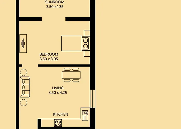 Det finns te/kaffebryggare, sitthörna och TV med satellitkanaler samt ett komplett kök utrustat med kaffe/tebryggare, kylskåp och ugn. Lägenheten består av 1 sovrum och 1 badrum med separat toalett och dusch.